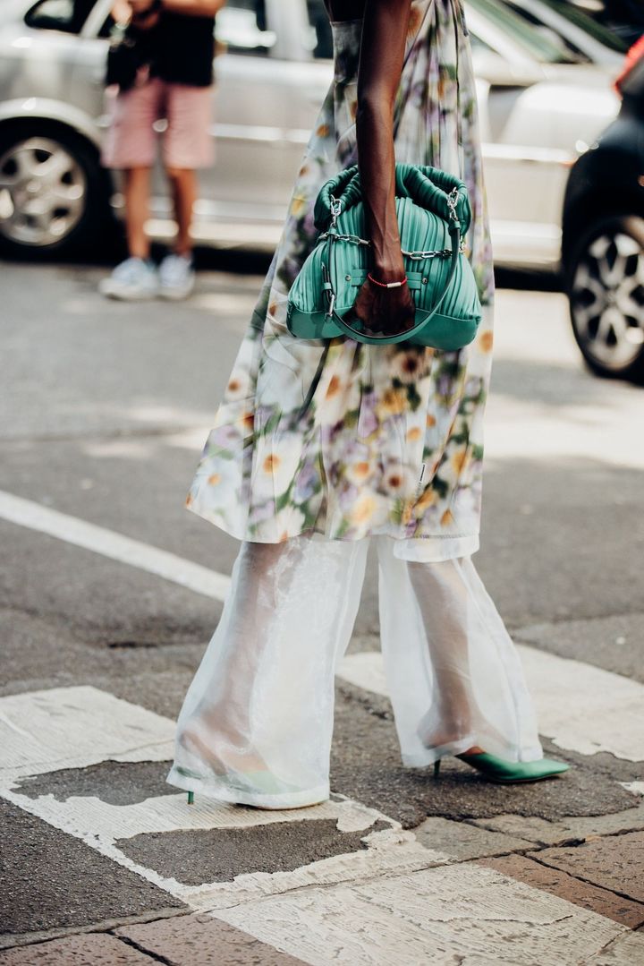 パンツとドレスを重ねる「ロング & リーン」のシルエットは、今季のレイヤードスタイルを象徴する上級テクニック。ボリュームが出がちな組み合わせも、シアー素材を選ぶことで軽さが加わり、夏らしい爽やかさを演出できる。動きに合わせて揺れる表情を味方に、モードで都会的なムードを楽しんで。