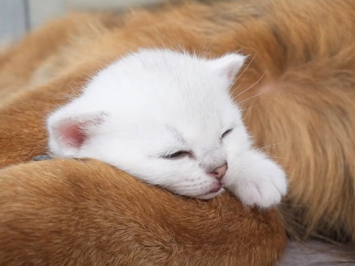 そして最後には、犬さんの腕の中でウトウトする子猫さん。