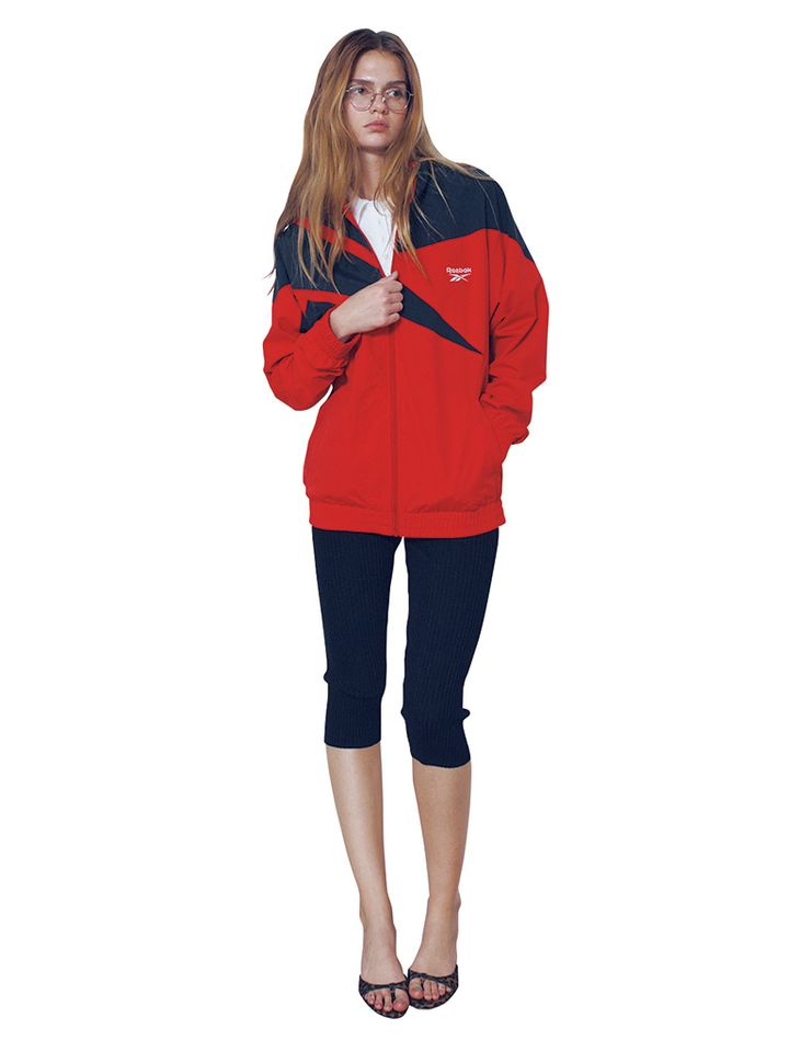 【POINT】ポロシャツ+レギンスのコンパクトなシルエットに重ねて、手軽にボディラインを目くらまし。配色に加え、ブランドロゴをモチーフとしやシャープなデザインは、軽装にキレを生むのにも効果的。