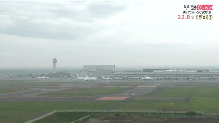 背景は4日午後5時ごろの新千歳空港情報カメラ
