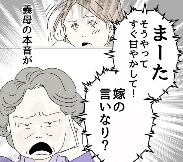 28歳で結婚したミユ。入籍をしてから夫のハルキと新居を探していると、義母から義祖母(義母の姑)の介護を理由に同居の要請が。新婚早々義母との関係をこじらせたくなかったミユは、条件を提示したうえで同居を了承します。義母は同居初日からミユに家事を押し付け、事あるごとにミユに文句を言ってくるように。ハルキは義母をたしなめますが、義母の行動はエスカレート。しかし、義祖母の介護施設入居が決まり、ようやくハルキとミユは新居で夫婦2人きりの生活を始められたのです。やがてミユは妊娠し、かわいい男の子を出産。退院直後のミユに、義母はねぎらいの言葉もかけず、またも勝手なことを言い始めます。さらに、ハルキとミユの暮らす家に泊まりこもうと、大量の着替えを用意していたのです。