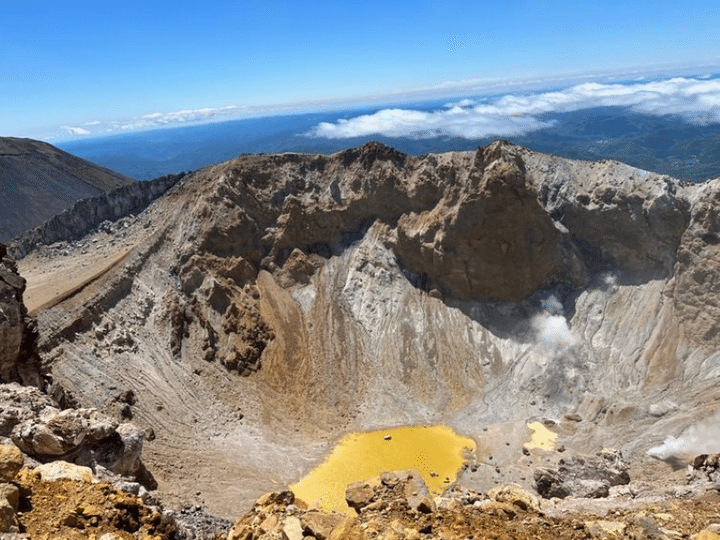 日本百名山で、往復5時間程度の登山です。途中からずっと見晴らしがいいのですが、山頂付近の河口の縁歩きが、まさに異世界!