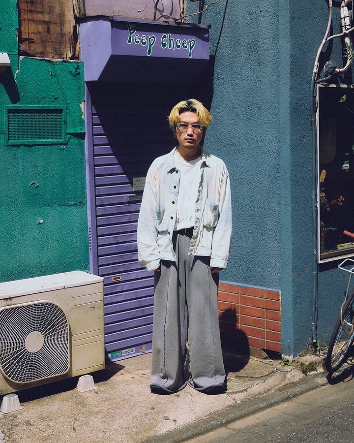 3. 【スナップ】袖長めのジャケットとルーズなスウェパンに、アニメTをさり気なく