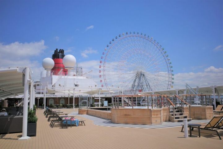 航海中はたくさんの人がプールで泳いだり、サイドデッキでのんびりしたりと楽しんでいました。停泊中は、現地のツアーに出かける人が多いために空いているので、時間をずらして楽しむのもひとつの手です。