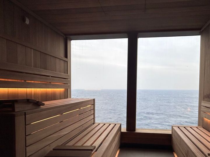 サウナはなんと海を眺めながら入ることができ、低温のドライでゆったり楽しむことができます。