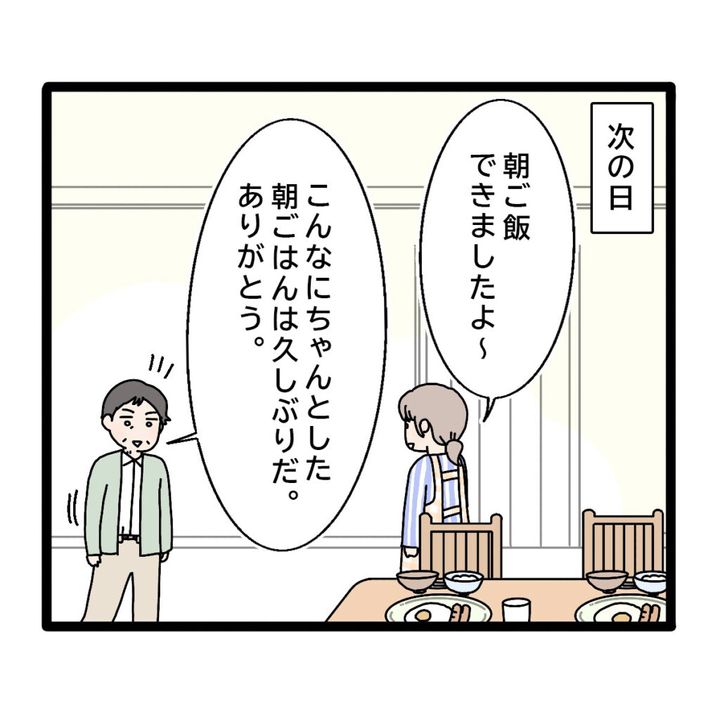 「朝ご飯できましたよ~」私がそう言うと、「こんなにちゃんとした朝ごはんは久しぶりだ。ありがとう」そう言って義父がやって来ました。