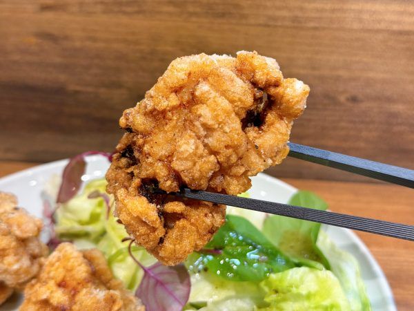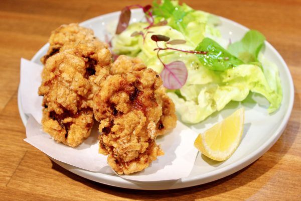 手のひらサイズの大ぶりな唐揚げは、衣はサクッと軽やか、中は驚くほどジューシー!しっかりめの味付けは、ビールにもワインにも合いそうです!シェアして食べるのにもピッタリ。