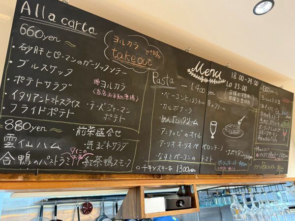 パスタや前菜、そしてワインのお供にぴったりなアラカルトメニューがずらりとあります。