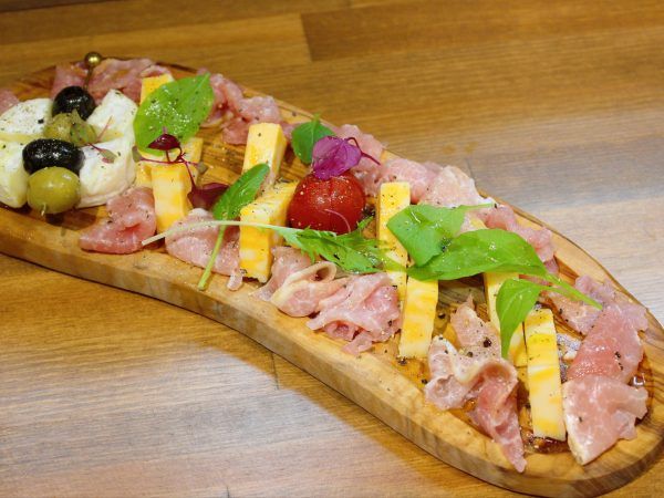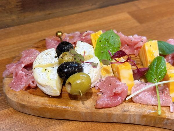 次にいただいたのは「生ハムとチーズ盛り」(1,300円・税込)。 色鮮やかに美しく盛られた一皿は、生ハムにカマンベールチーズ、チェダーチーズにオリーブと、バルらしい満足度の高い一品です。