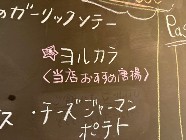 実は「ヒルトヨル」で一番人気とも言われているのがなんと「唐揚げ」!その名も「ヨルカラ」(660円・税込)です。イタリアンバルなのに?と思うかもしれませんが、一度食べればその理由がわかります。からあげ情報は事前にリサーチしていたので、こちらも注文しました!