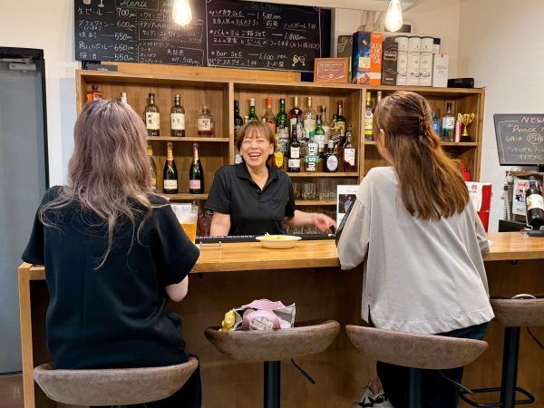 店内はカウンターとテーブル席があり、木目調のインテリアで落ち着いた雰囲気。 女性のお客さんがおひとりで訪れていたり、常連さん同士が仲良くおしゃべりしている姿が。まるで“近所の小さな社交場”のような、自然体でいられる空気感が印象的でした。