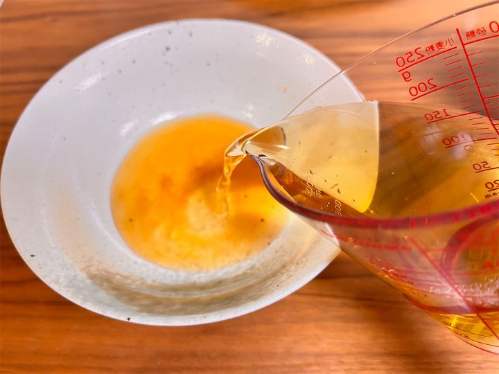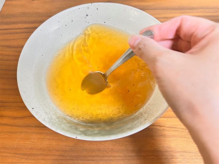 動画ではラップをかけて冷蔵庫で冷やす工程がありますが、今回は冷えたお茶を使っているので省略します。