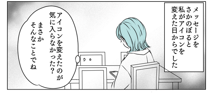 メッセージをさかのぼると、(このあたりから反応が冷たいんだよな)と思った日は、私がアイコンを変えた日でした。(ん? アイコンを変えたのが気に入らなかった?)と思いつつ、(まさかそんなことでね)とあまり気にしませんでした。