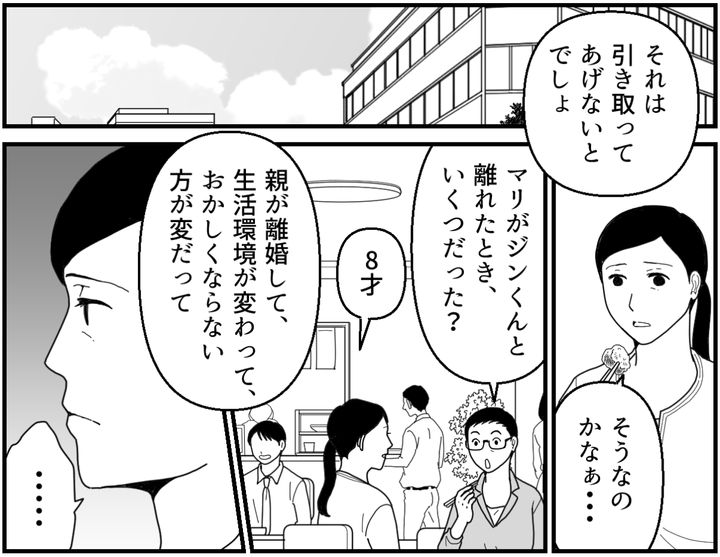 職場の同僚に相談すると、ぜひ引き取った方がいいと勧められました。あのときのジンは私を憎むことで元夫の側に居場所を見つけていたのでしょう。親の離婚で苦しめたことは本当に申し訳ないと思っています。けれど私は……。