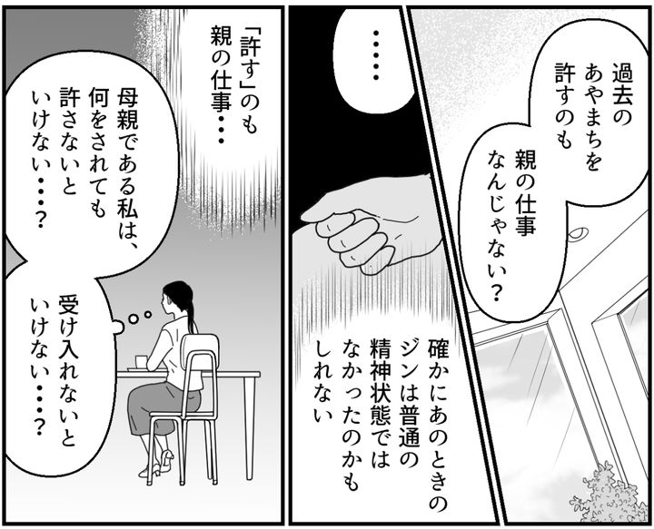 母親である私は、何をされても許さないといけない……? 何が正解なのか分かりません。本当なら仲良く一緒に暮らしていきたかった。でもできなかった。それはどうして……? 私は何度も何度も自分に問いかけて、答えを出したのでした。