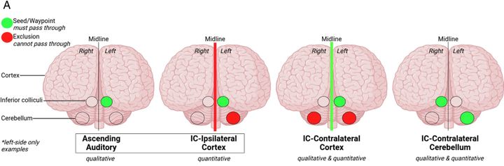 具体的には「下丘(かきゅう/inferior colliculus)」という音の情報が集まる中継地点と、「小脳(しょうのう/cerebellum)」という運動の調整をつかさどる部分の間にある神経のつながりを、MRIで可視化したのです。