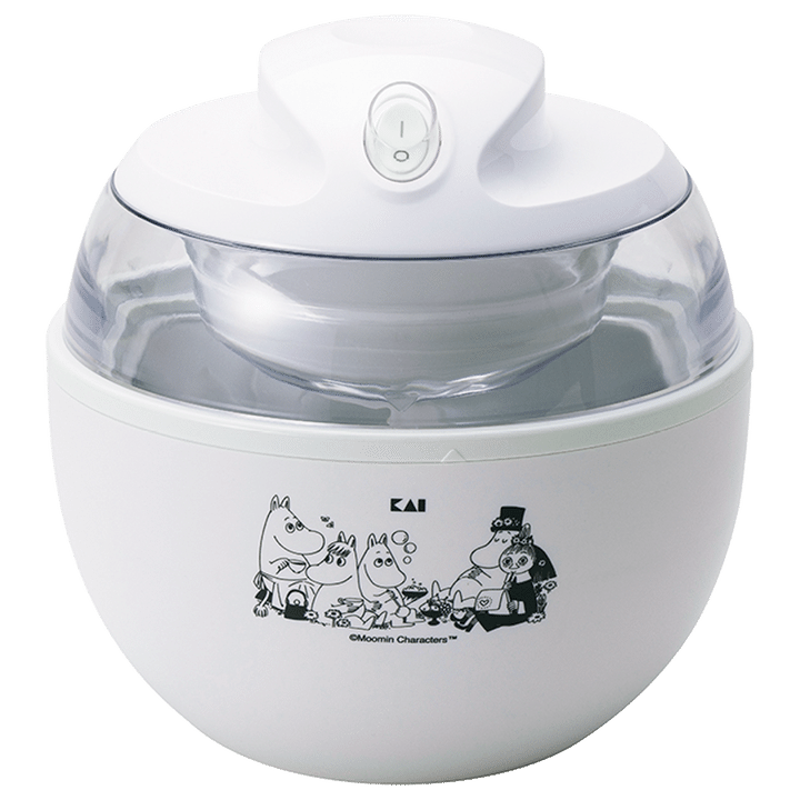 独自の羽根が材料を万遍なく撹拌し、空気を含んだ濃厚で滑らかなアイスクリームが作れる。和やかなムーミンたちのプリントも◎。ボタンひとつで本格的な手作りアイスを!