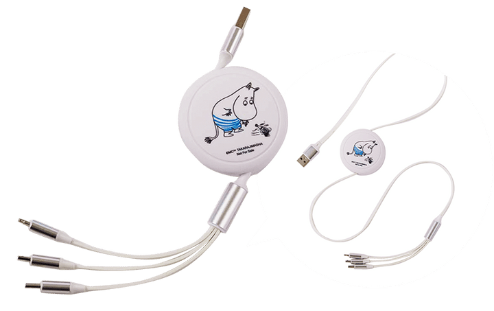 3種類の端子付き! 巻き取り式USB充電ケーブル&ビニールポーチ
