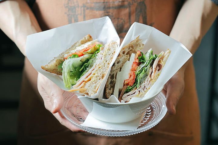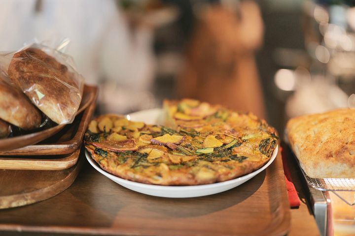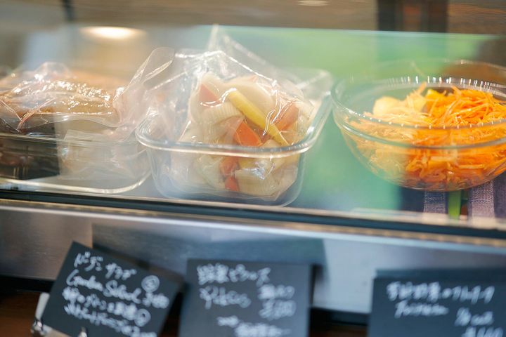 小さな店内では、季節の惣菜がショーケースを賑わせる。なかでも名物は、毎日厨房で焼きあげるフォカッチャを使ったサンドイッチ。イタリアの全粒粉、オーガニックのオリーブオイルと海塩を用いる生地は、サンドイッチとして食べやすいよう、柔らかめに仕上げている。