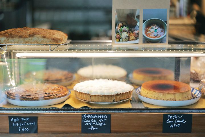 ショーケースには「無農薬キャロットケーキ」や「焼プリン」、さらにカウンターの上には「バナナブレッド」など、クラシックな焼き菓子が所狭しと並ぶ。どの品も、欧米の家庭で受け継がれているような、素朴な風合いが印象的だ。