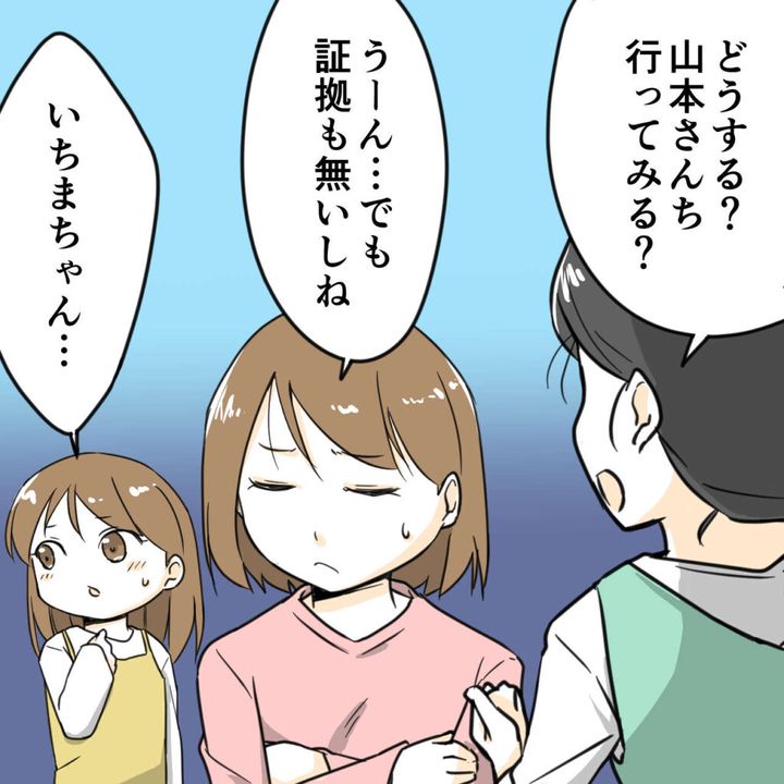 そして、「どうする?山本さんち行ってみる?」心配したミチコにそう言われ、「うーん・・でも証拠も無いしね」と呟くと「いちまちゃん・・」とユカも心配していました。