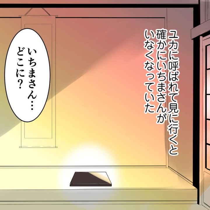 ユカに呼ばれて見に行くと、確かにいちまさんはいなくなっていました。「いちまさん・・どこに?」と呟く私。