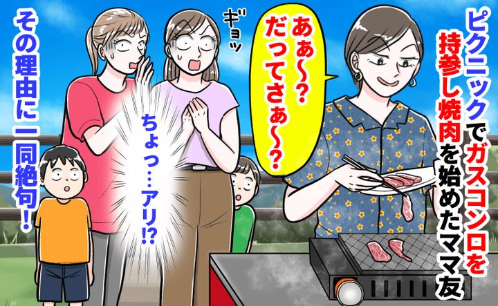「ちょっ…アリ!?」ピクニックでガスコンロを持参し焼肉を始めたママ友。え…?その理由に一同絶句!