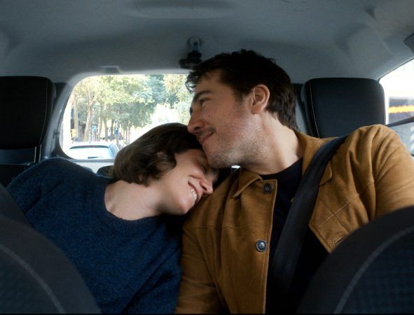 バルセロナ空港へ向かうふたり。ラジオからトランプ大統領の政策を報じるニュースが。