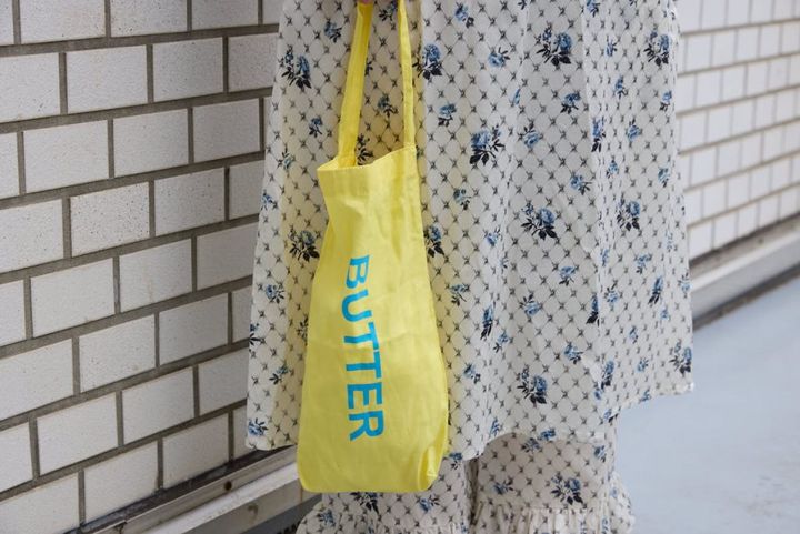 縦長シルエットに、夏らしさをぐっと引き立てるイエロー×ブルーの色合わせ。