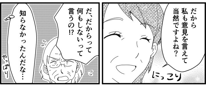 「養ってもらっているくせに偉そうよ」と、私が小遣い程度にしか稼いでいないと思っている様子の義両親に、「夫と同じくらい稼いでいる」と事実を伝えました。