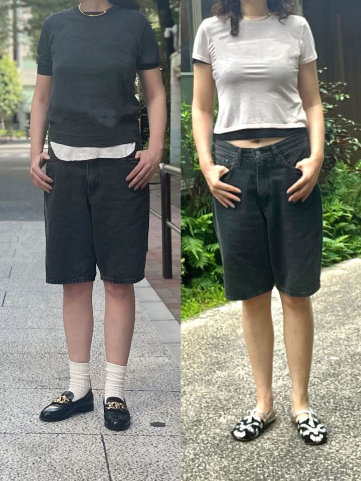 これは昨今トレンドのウルトラバギーのハーフパンツバージョンで、とにかくゆったりとしたフィッティング。世界の洒落者たちはみんなゆったりめをはいているんですよね。それが素敵♡ と思っていたので、このハーフパンツはまさにドンピシャでした。サイズも悩みに悩みましたが、今回は30インチをセレクト。メンズフィットになるので筆者は本当は29インチがベストなのですが(※メンズフィットはレディースフィットの2インチくらい上がオススメらしいです)、とにかくゆるーくはきたかったため、ワンサイズ上にしたんです。そしたら少し腰に落としてはいたときの感じが、すごく好み。まだ試していませんが、今後はアンダーウェアや別のショートパンツをインにしてチラ見せさせたり、さまざまなレイヤードを楽しみたいと思っています!