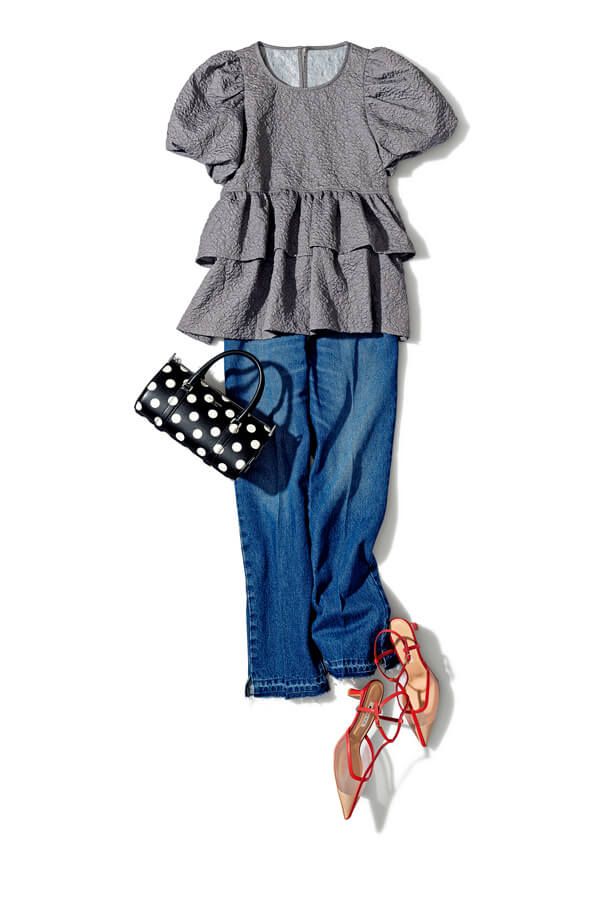 3. ちょうどいい甘辛バランス♪華袖トップス×デニムのフレンチシックコーデ3選