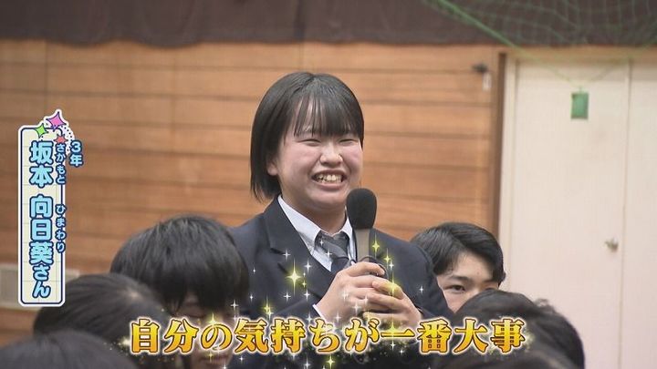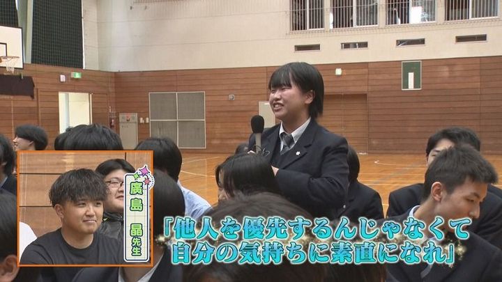 世永アナ:「先⽣の恋バナから、教えてもらってどんなこと学んだの?」3年 坂本さん:「⾃分の気持ちが⼀番⼤事」
