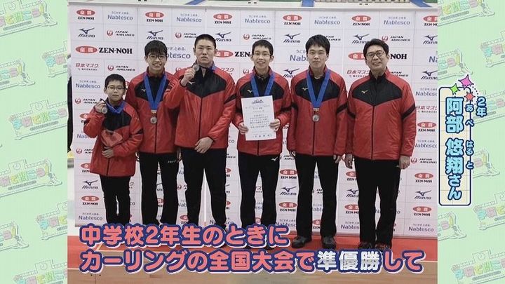 2年 阿部さん:「⼩学校1年⽣からカーリングをしているので、部活として続けられるこの⾼校を選びました。中学校2年⽣のときにカーリングの全国⼤会で準優勝をして、決勝の舞台がとても楽しくて」