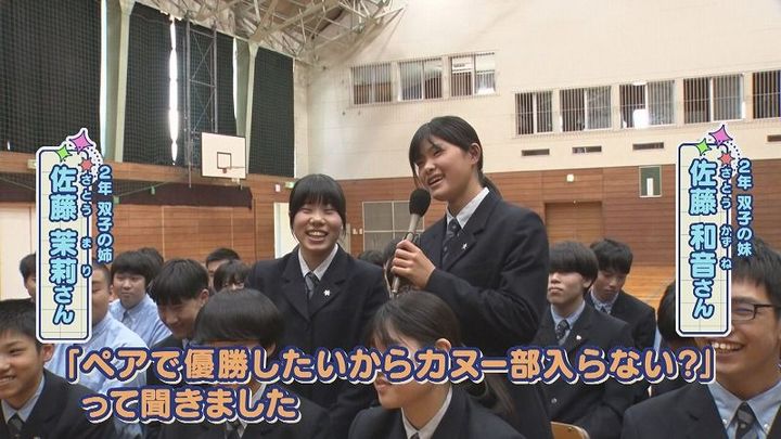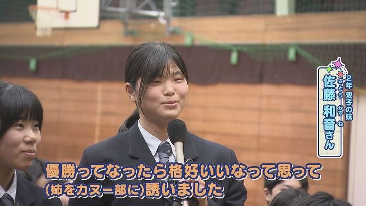 世永アナ:「どんな誘い⽅したの?」2年 佐藤 和音さん(妹):「ペアで優勝したいからカヌー部⼊らない?って誘いました」