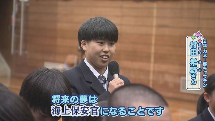 2年 村田さん:「将来の夢は海上保安官になることです。中学⽣まで⽔泳をやっていて、それを活かせて尚且つ⼈助けもできるっていうのが格好いいなと思ったので」
