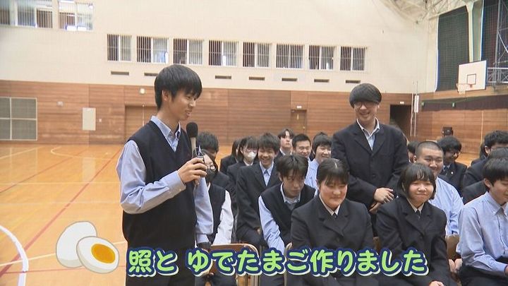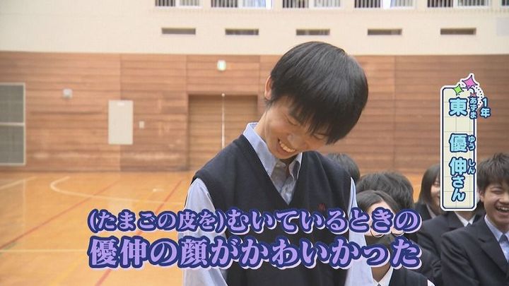 1年 東さん:「最近は照とゆでたまごを作りました」世永アナ:「ゆでたまごの出来はどうでしたか?」1年 東さん:「可愛かったです」