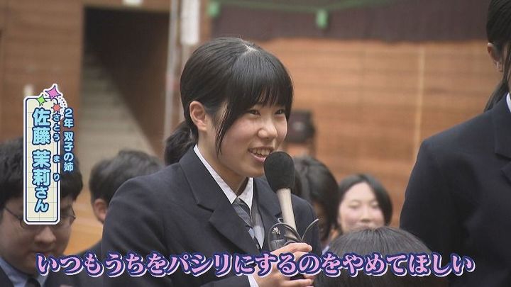 2年 佐藤 茉莉さん(姉):「⼈を操るのがうまい。いつも、うちをパしりにするのをやめてほしい」