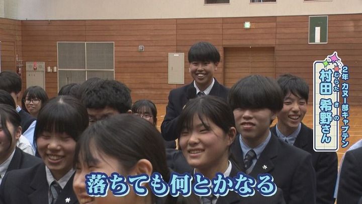 世永アナ:「⽔泳がカヌーに活かされていることは︖」2年 村田さん:「落ちても何とかなる」