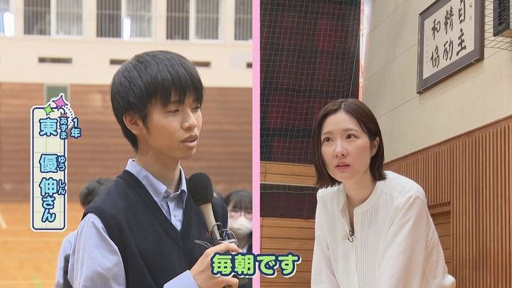 1年 東さん:「毎朝です」世永アナ:「よく耐えてるね」1年 東さん:「慣れました」