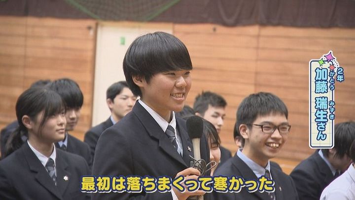 2年 加藤さん:「最初は落ちまくって寒かった」世永アナ:「⼼折れず︖」2年 加藤さん:「折れました。同級⽣が乗れるようになっていたから、⾃分も頑張んなきゃなと思った」