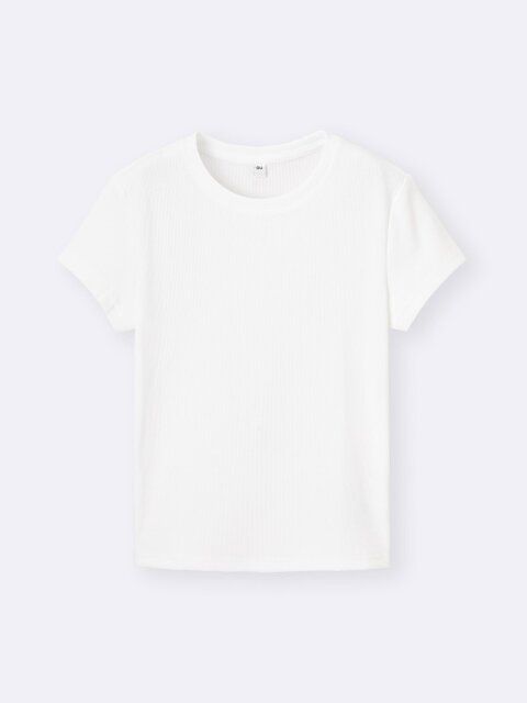 ほどよい生地の厚みと伸びでフィット感抜群のリブT。腕がスッキリ見える袖のデザインが嬉しいポイントです。