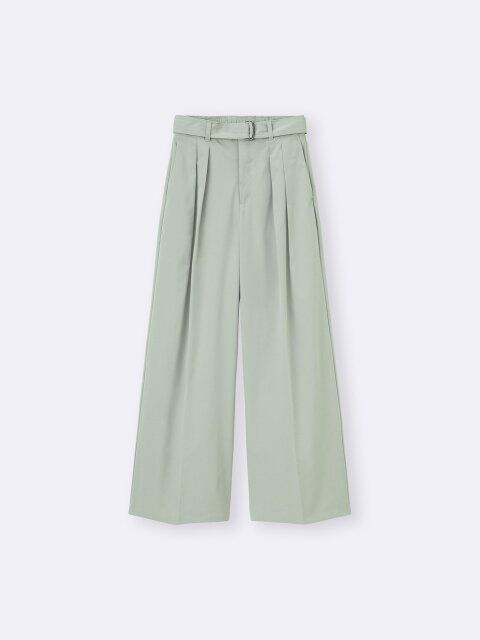 きちんと感も快適さも叶える、セットアップ風カジュアルキレイめスタイル。優しいグリーンで顔映りもきれいに、揺れ感のあるシルエットが涼やかです。