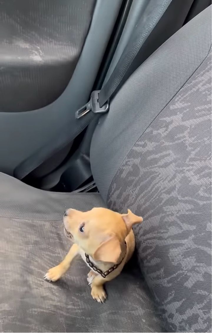 3. 車に乗ろうとしたら・・助手席に先約が!シートの上を陣取るのは・・愛らしい子犬!!【海外・動画】