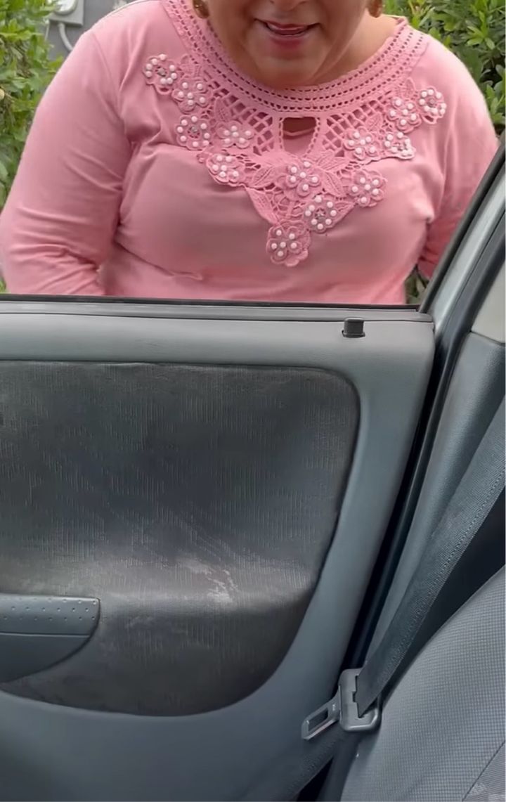 助手席に乗り込もうと、車のドアを開けた女性。 ところが、そこにはちょこんと座る先客の姿がありました!