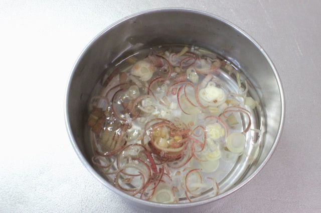 粗熱を取ってから冷蔵庫で30分ほど冷やしました。つゆがしっかりと冷めてから2の工程に移ると、冷たい「納豆ぶっかけそうめん」を楽しめますよ。