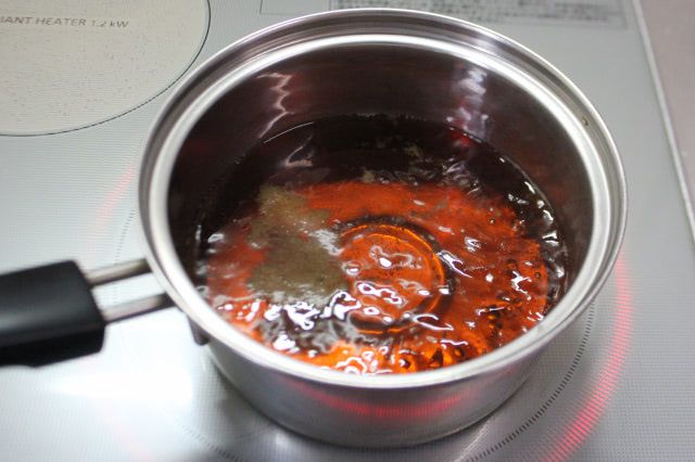 1. 鍋にだし、しょうゆ、みりんを入れて中火にかけてひと煮立ちさせ、粗熱を取って冷蔵庫で冷やします。