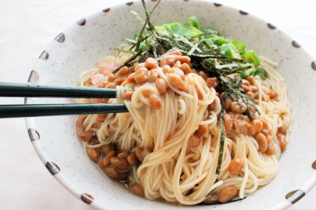 そうめんを掴んでみると納豆がねば~っと絡みつきます。そのまま口へ運ぶと、そうめんも納豆もズルズル~と喉を通っていきます。