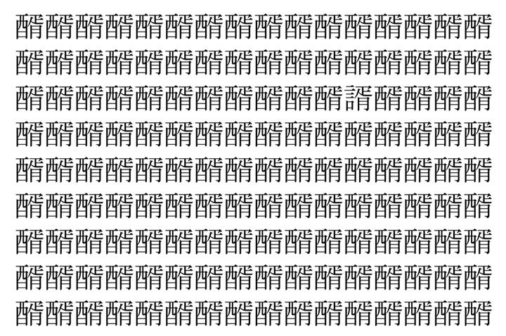 【脳トレ】「醑」の中に紛れて1つ違う文字がある!?あなたは何秒で探し出せるかな??【違う文字を探せ!】