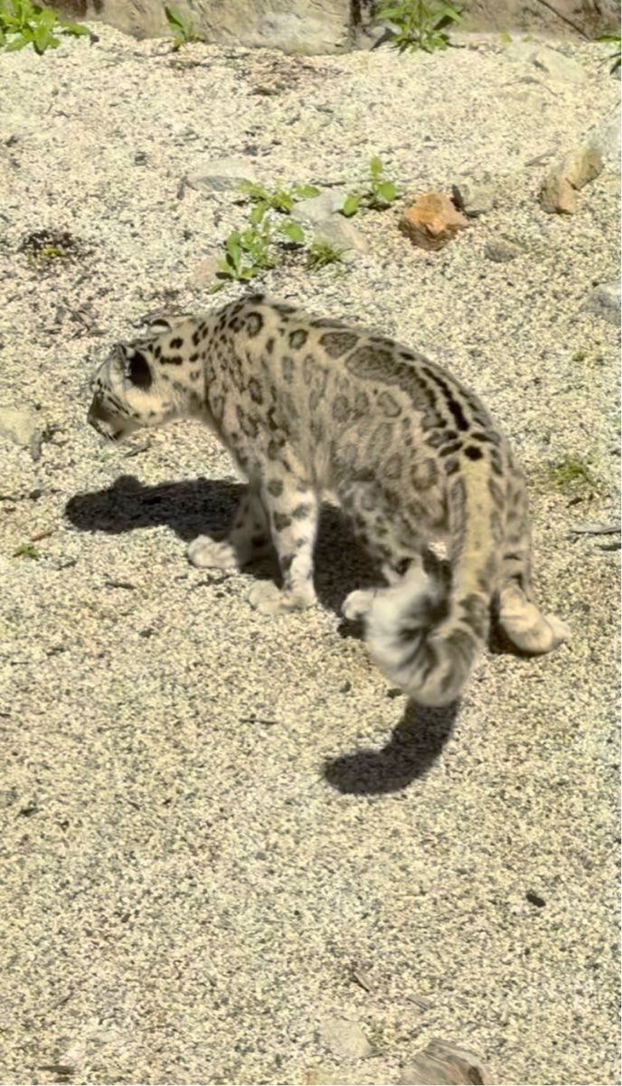 映像が撮影された場所は、オーストラリアにあるメルボルン動物園。 そこには、雪のように淡いグレーの毛並みが美しいユキヒョウがいました。